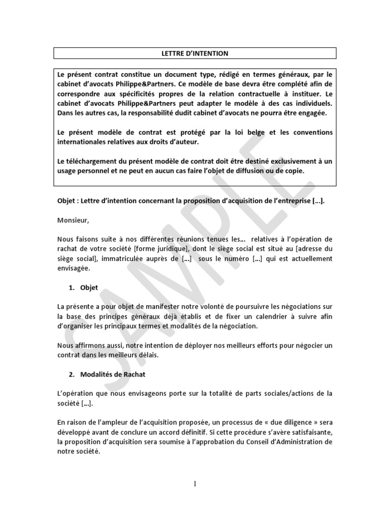 Rachat D Entreprise La Lettre D Intention