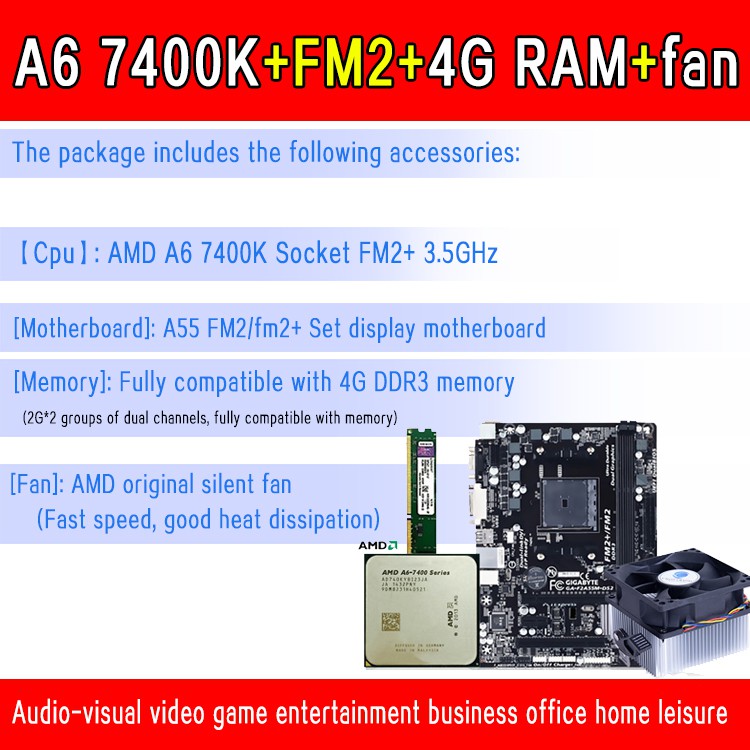 Amd A6 7400k Socket Fm2 3 5ghz Cpu A55 Fm2 Fm2 Motherboard 4g Ram Radiator Fan Four Piece Discount Shopee Philippines