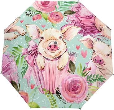 Schönheit Glückliches Schwein Palmblatt Regenschirm Taschenschirm Automatische Umbrella Winddichte Sonnenschutz Regenschirme Taschenschirme für Damen Herren: Amazon.de: Koffer, Rucksäcke & Taschen