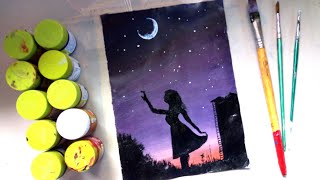 How to paint a moonlight night with poster colour 2 | very easy - YouTube